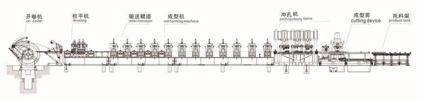 開卷---校平----成型---沖孔---切斷---托料架